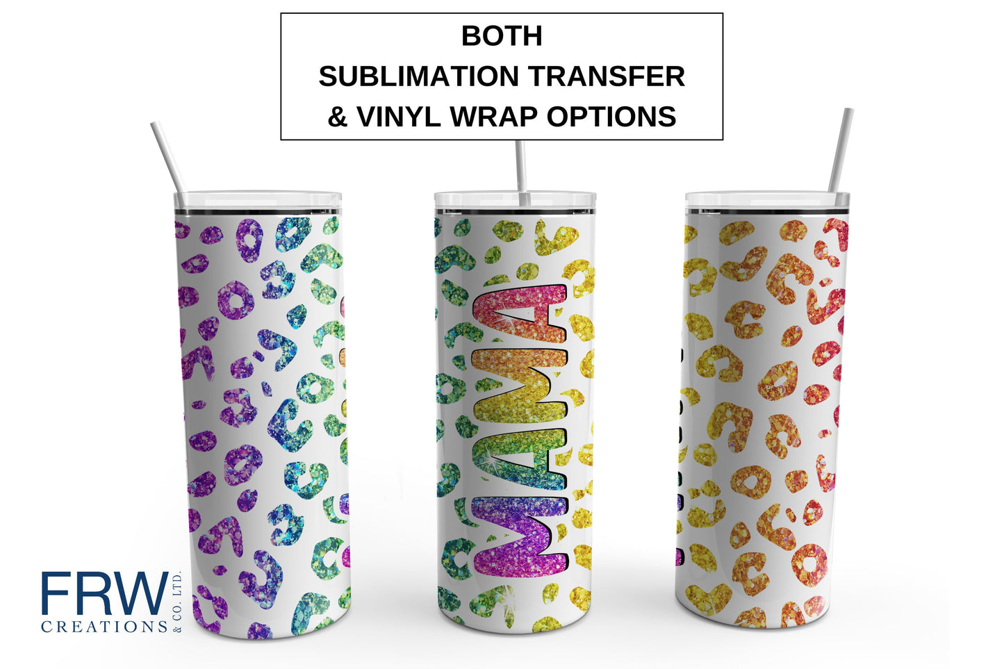 THAT MUST BE PAID BEFORE ITEMS SHIPMama Rainbow Leopard Sublimation Tumbler, Ready to Press Sublimation Transfer, 20 oz. Skinny Tumbler