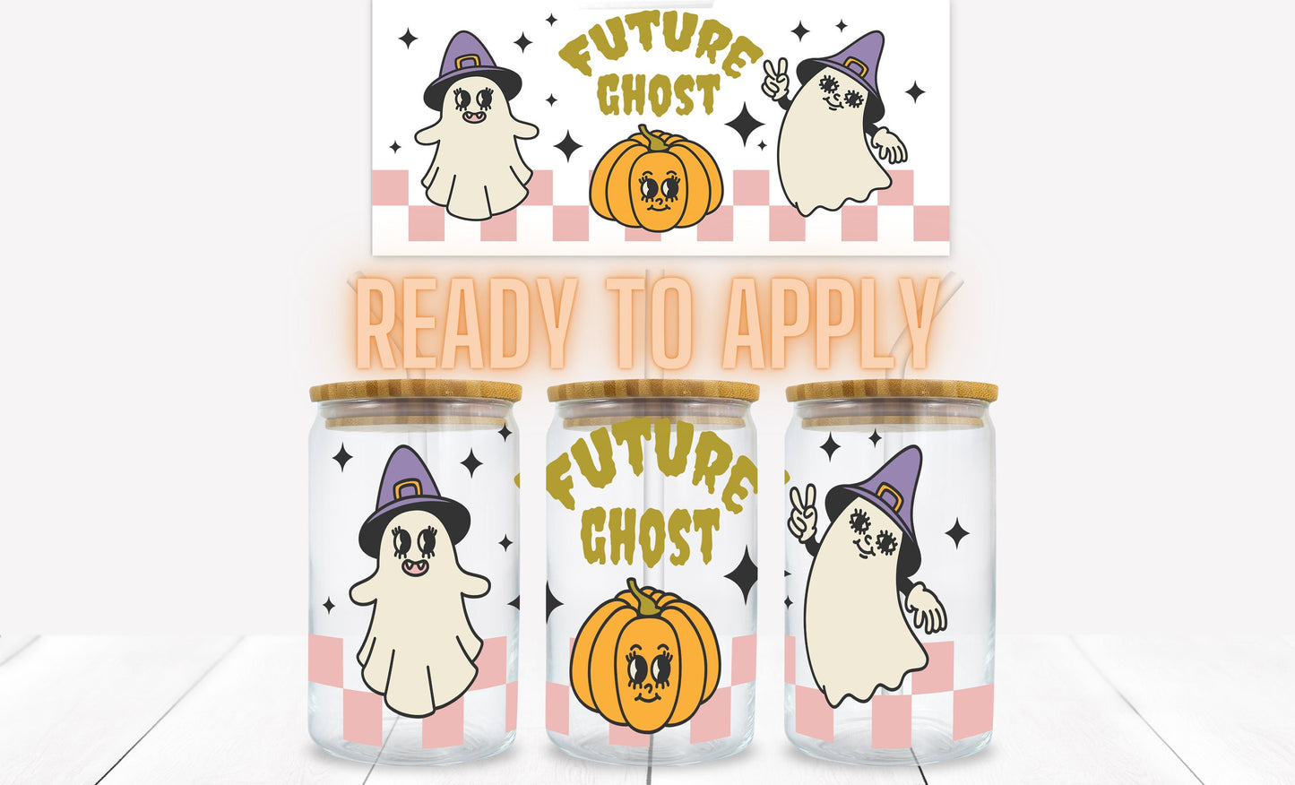 Retro Future Ghost 16 oz. Libbey Tumbler Wrap – UV DTF transfer