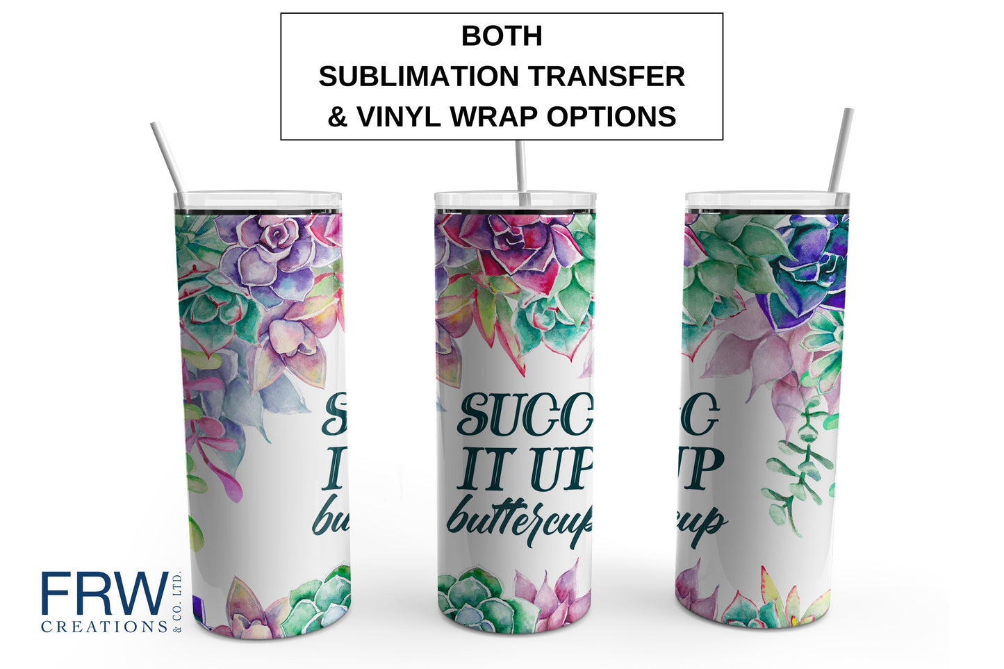 Succ It Up Buttercup Succulents Tumbler Sublimation Tumbler, Ready to Press Sublimation Transfer, 20 oz. Skinny Tumbler