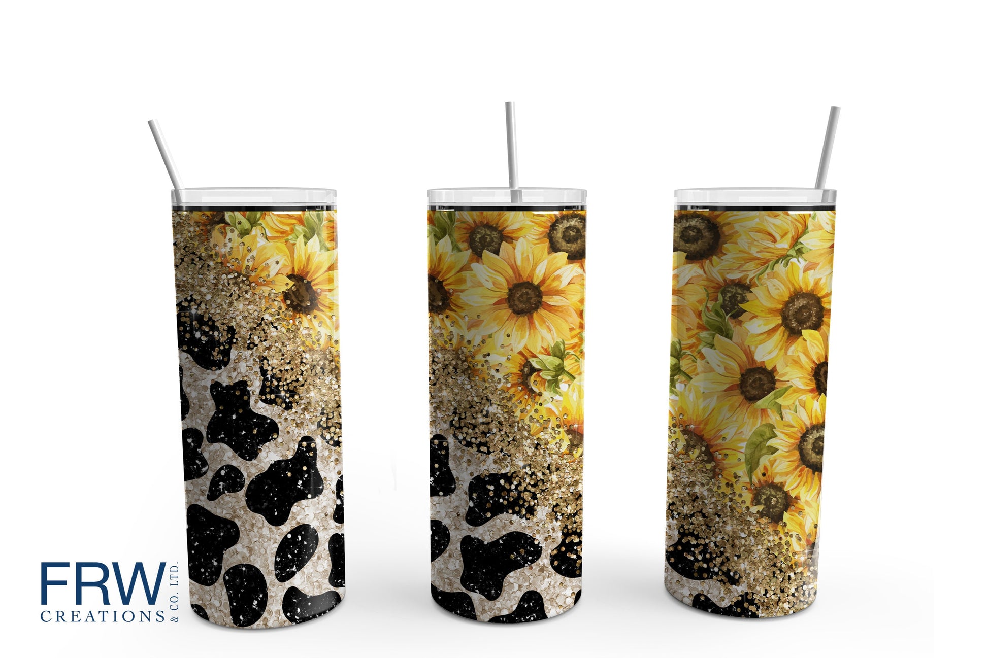 THAT MUST BE PAID BEFORE ITEMS SHIPSunflower Cow Print Sublimation Tumbler, Ready to Press Sublimation Transfer, 20 oz. Skinny Tumbler