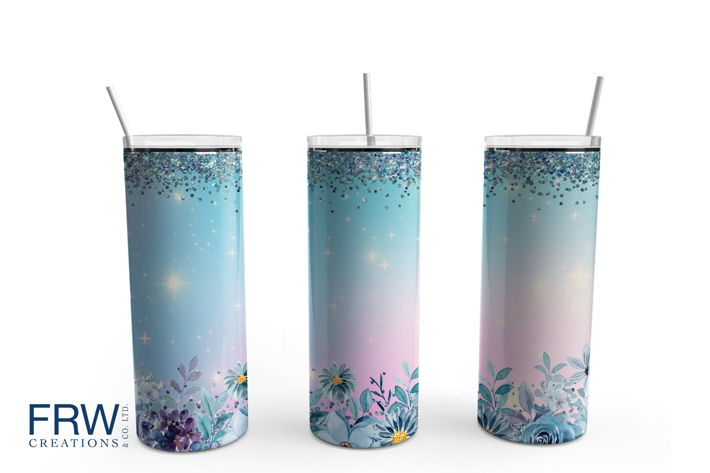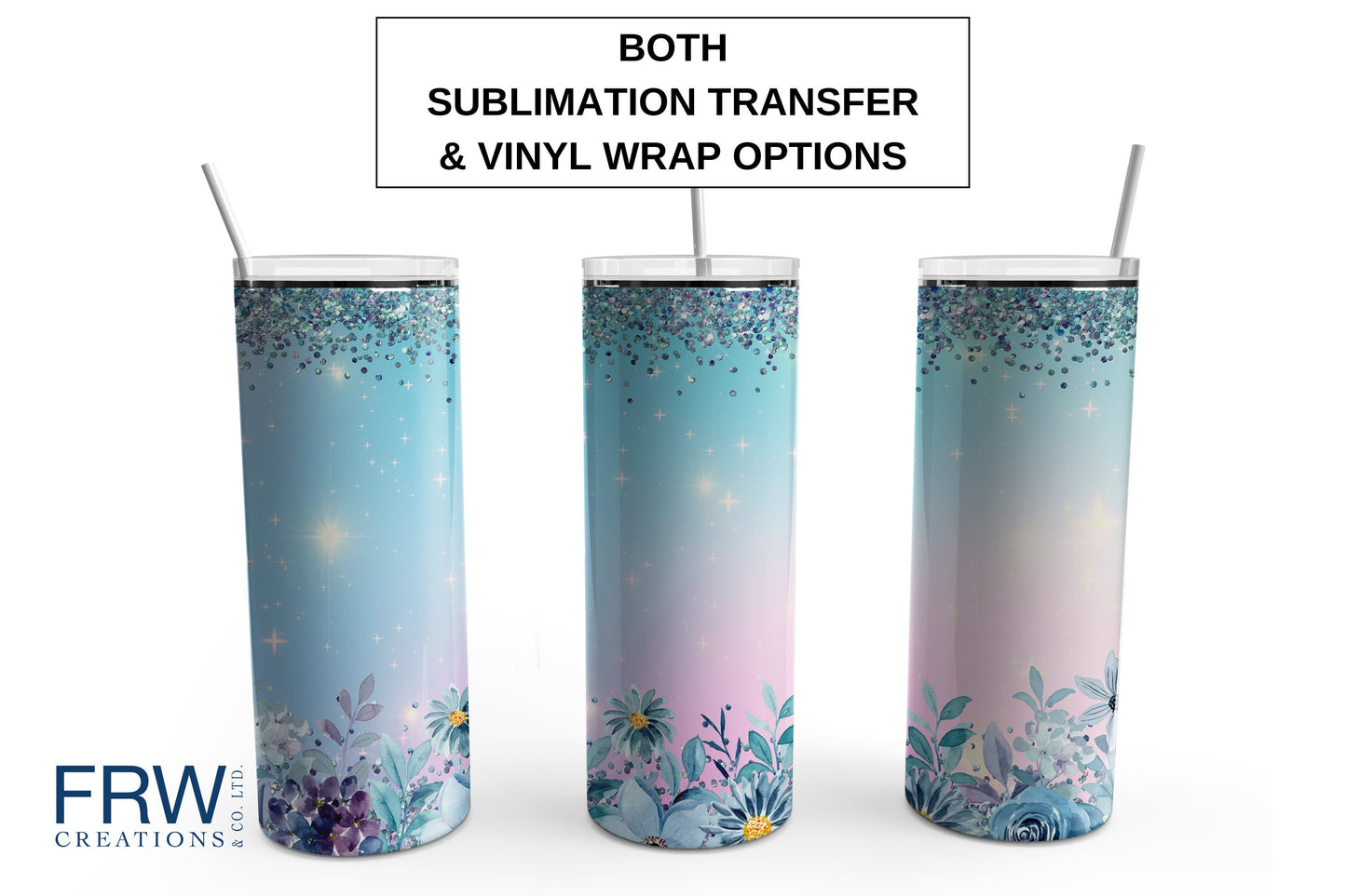 Watercolour Flowers Sublimation Tumbler, Ready to Press Sublimation Transfer, 20 oz. Skinny Tumbler